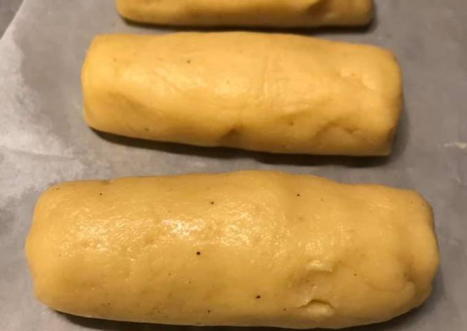 - Diviser la pâte en 6 portions égales et façonner 6 belles quenelles à la main..